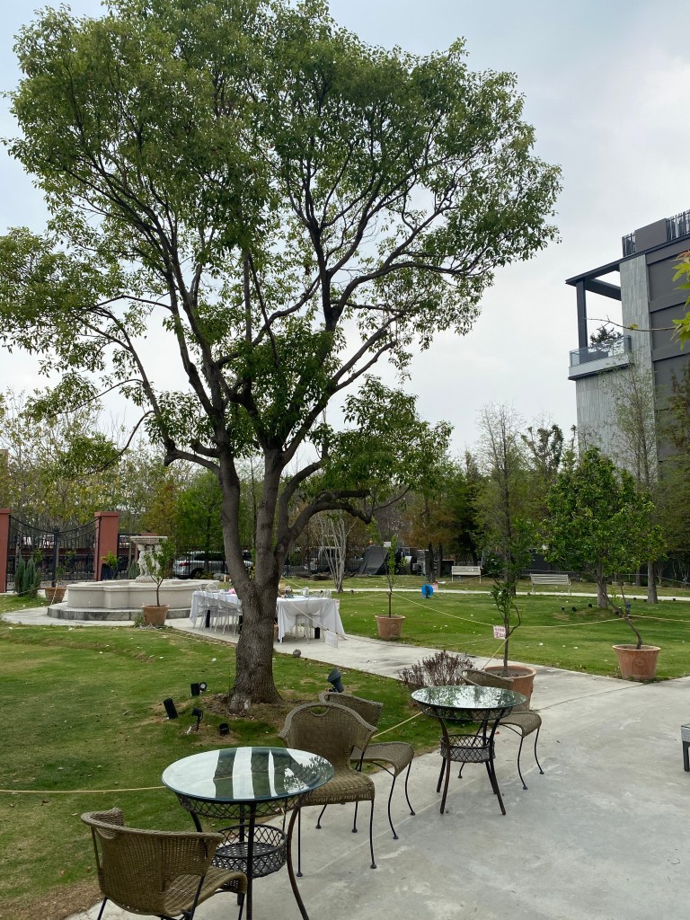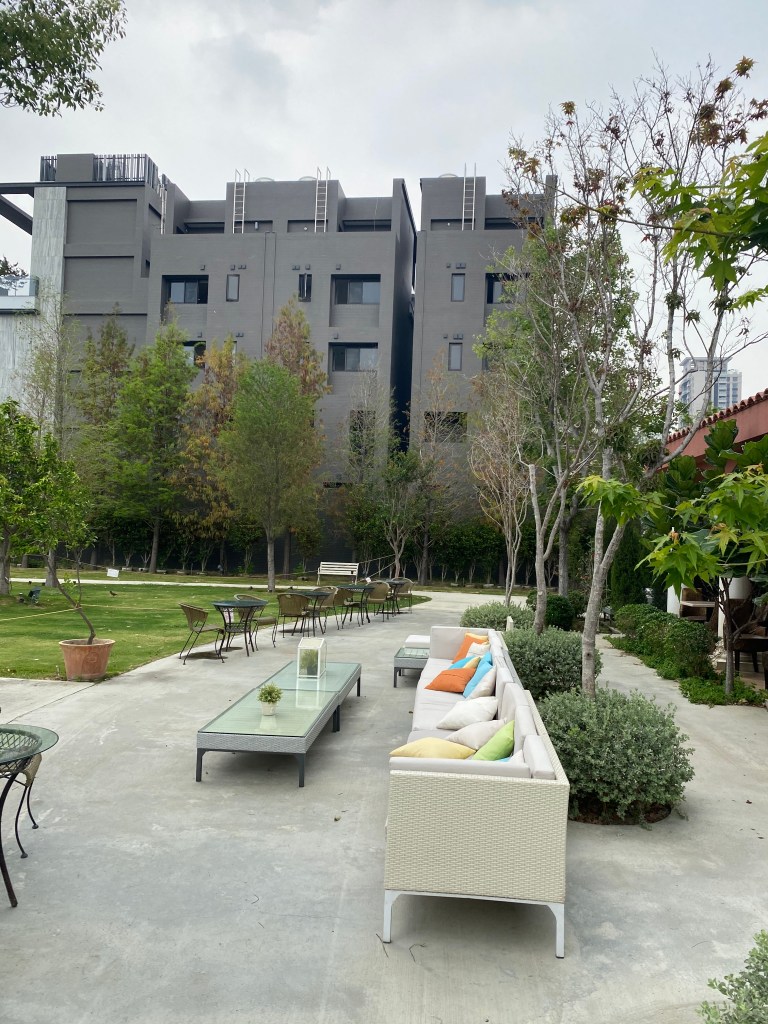 欣賞完內部的裝潢後,來到後花園,看到的真的是一大片草皮及休憩區~