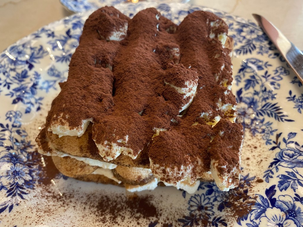 提拉米蘇對山姆而言,甜度有點過頭,上面的巧克力粉又過於苦澀