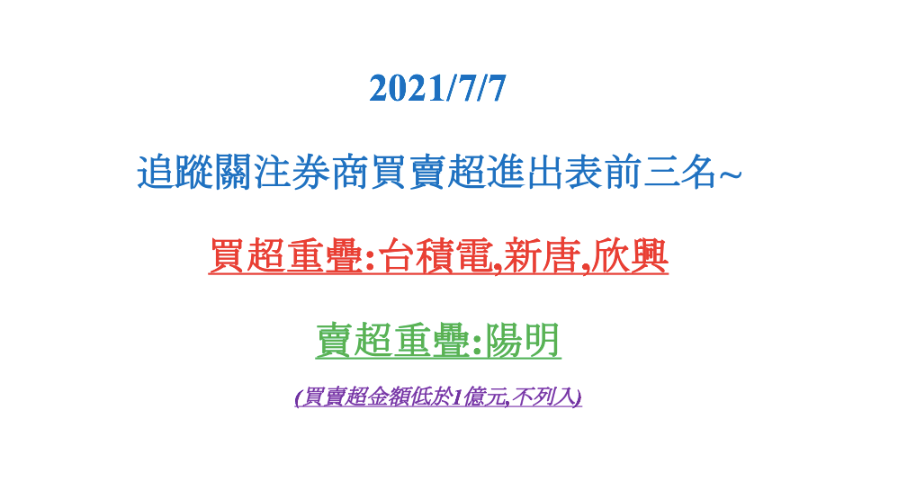 ~券商每日分點20210707~ 分類:股盈Good IN2021 /年 7 /月 8 /日2021 /年 8 /月 1 /日發表於早安台股標籤:券商分點,市場,投資 主要是希望與朋友們分享並期待討論互動並無特定推薦任何個股用意請任何的標的買賣及進出場仍依照自己的風險喜好為主最後預祝好友們都牛年大發 一起幸福人生~~ 分享此文: 分享到 X(在新視窗中開啟) X 分享到 Facebook(在新視窗中開啟) Facebook 喜歡 正在載入... 相關 發表者:股盈Good IN 從小即喜愛投資理財的小馬~~一路走來坎坎坷坷~~漸漸地邊摸索邊跌倒的走向了康莊大道 檢視更多文章