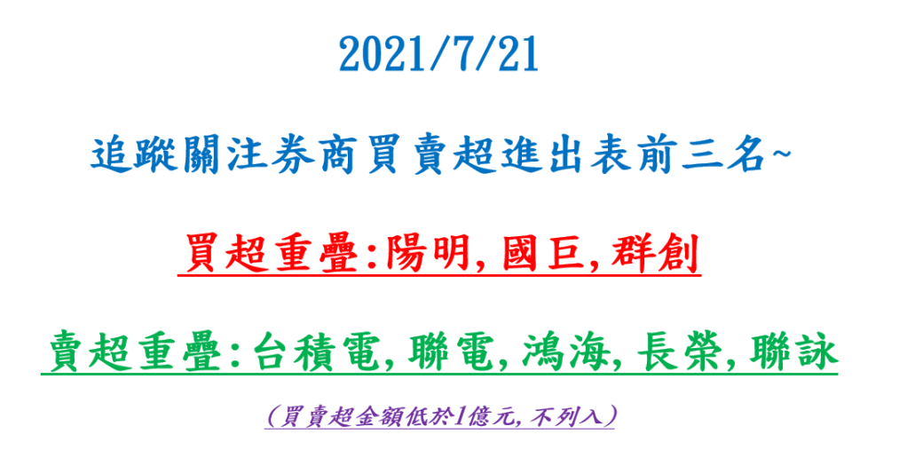 台股每日策略~20210721~ 關注股6271同欣電~2327國巨