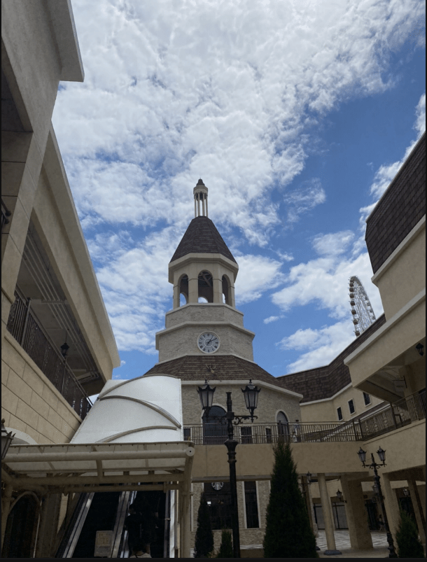 接近中午時,天空開始美了起來,藍天白雲摩天輪~穿插於建築物中