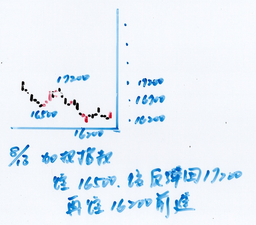 後續預測方向有機會往16500點繼續下跌,爾後反彈回17200點附近