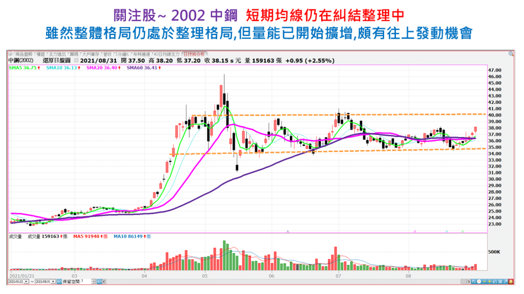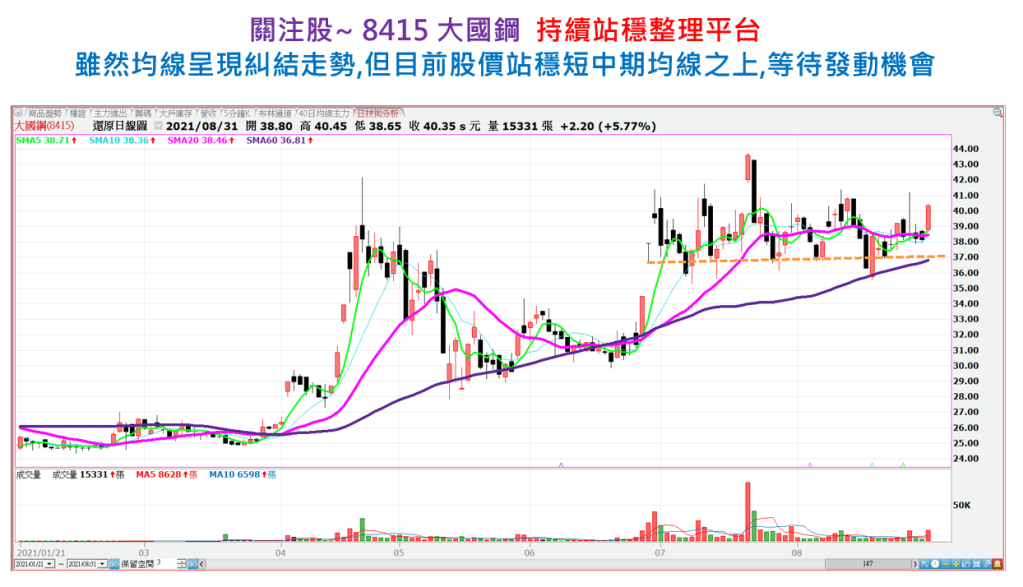 ~早安台股~20210831~關注股~2002中鋼~8415大國鋼 分類:股盈Good IN2021 /年 9 /月 1 /日發表於早安台股標籤:2002,8415,大國鋼,早安台股,中鋼 分享此文: 按一下即可分享至 X(在新視窗中開啟) X 按一下以分享至 Facebook(在新視窗中開啟) Facebook 喜歡 正在載入... 相關 發表者:股盈Good IN 從小即喜愛投資理財的小馬~~一路走來坎坎坷坷~~漸漸地邊摸索邊跌倒的走向了康莊大道 檢視更多文章