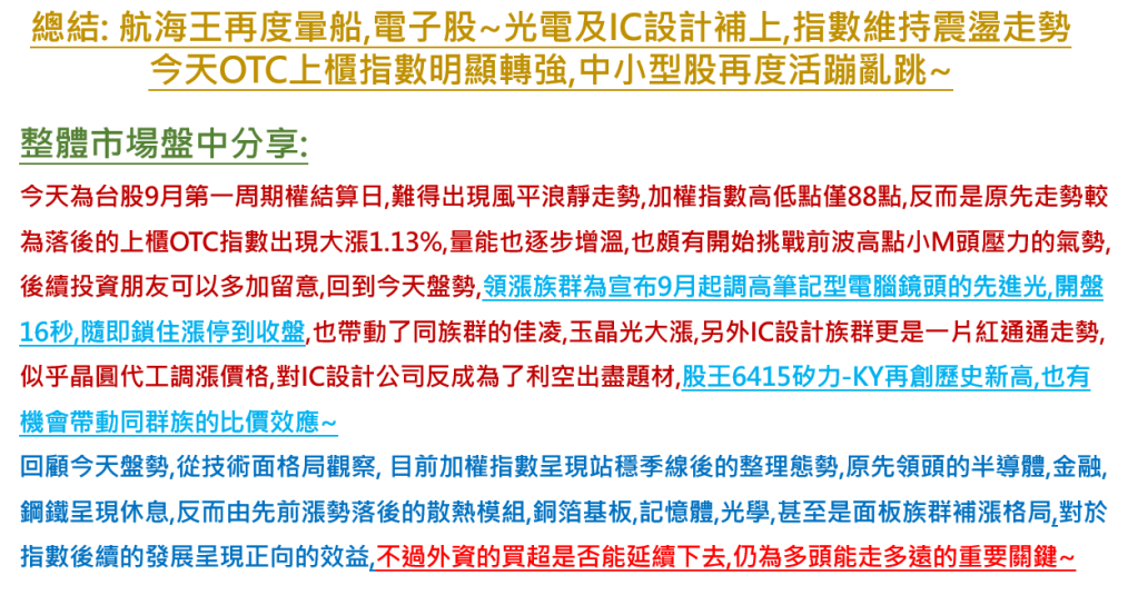 ~早安台股~20210901~關注股~6182合晶~8086宏捷科 分類:股盈Good IN2021 /年 9 /月 2 /日發表於早安台股標籤:6182,合晶,宏捷科,早安台股 分享此文: 按一下即可分享至 X(在新視窗中開啟) X 按一下以分享至 Facebook(在新視窗中開啟) Facebook 喜歡 正在載入... 相關 發表者:股盈Good IN 從小即喜愛投資理財的小馬~~一路走來坎坎坷坷~~漸漸地邊摸索邊跌倒的走向了康莊大道 檢視更多文章