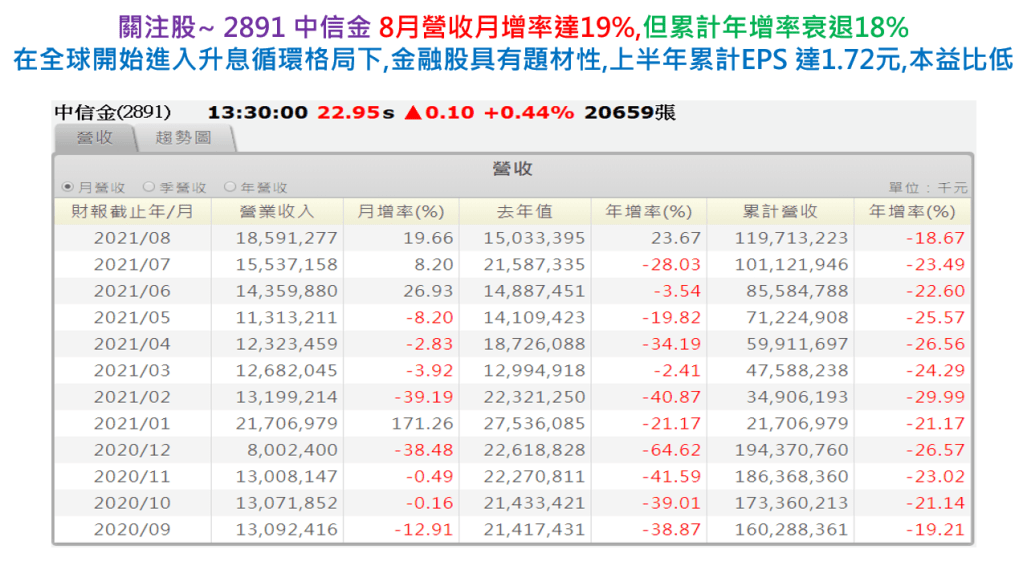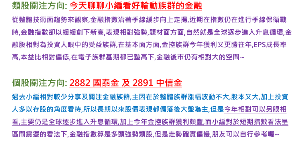 ~~早安台股~20210910~關注股~2882國泰金~2891中信金 分類:股盈Good IN2021 /年 9 /月 12 /日2021 /年 9 /月 12 /日發表於早安台股標籤:2882,2891,國泰金,早安台股,中信金 分享此文: 按一下即可分享至 X(在新視窗中開啟) X 按一下以分享至 Facebook(在新視窗中開啟) Facebook 喜歡 正在載入... 相關 發表者:股盈Good IN 從小即喜愛投資理財的小馬~~一路走來坎坎坷坷~~漸漸地邊摸索邊跌倒的走向了康莊大道 檢視更多文章