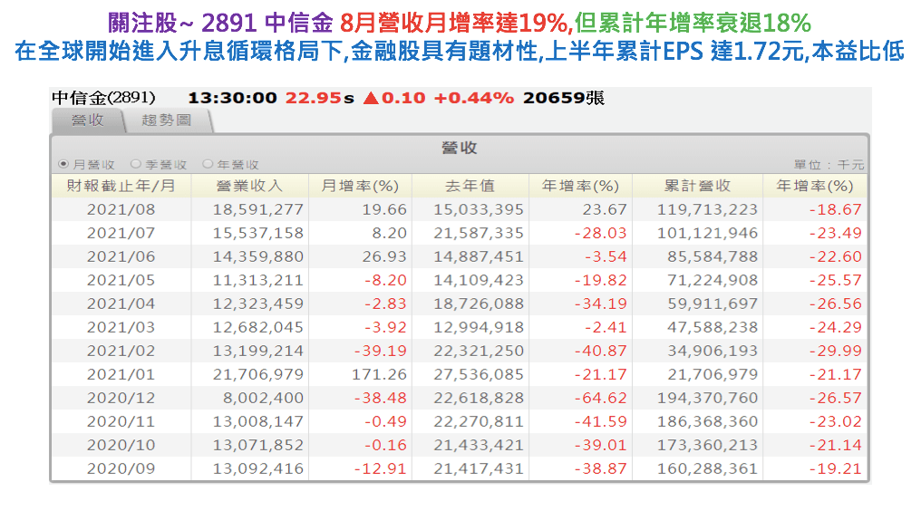~早安台股~20210914關注股~2882國泰金~2891中信金~ 分類:股盈Good IN2021 /年 9 /月 14 /日2021 /年 9 /月 14 /日發表於賺錢去,早安台股標籤:2882,2891,台股策略,國泰金,投資,投資分析,早安台股,中信金 分享此文: 按一下即可分享至 X(在新視窗中開啟) X 按一下以分享至 Facebook(在新視窗中開啟) Facebook 喜歡 正在載入... 相關 發表者:股盈Good IN 從小即喜愛投資理財的小馬~~一路走來坎坎坷坷~~漸漸地邊摸索邊跌倒的走向了康莊大道 檢視更多文章