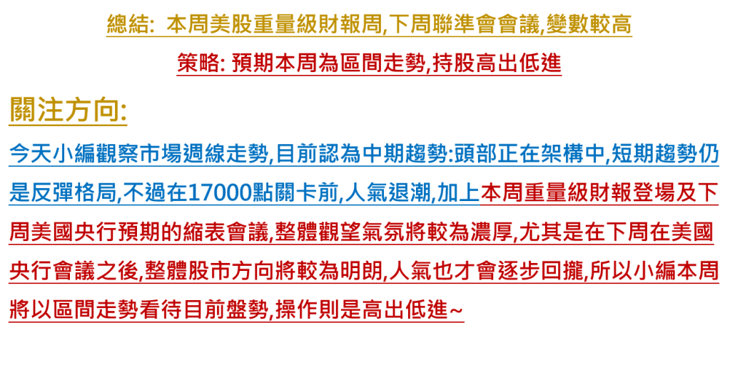 ~~早安台股~20211025~預期本周為區間走勢,持股高出低進 分類:股盈Good IN2021 /年 10 /月 26 /日發表於早安台股 分享此文: 按一下即可分享至 X(在新視窗中開啟) X 按一下以分享至 Facebook(在新視窗中開啟) Facebook 喜歡 正在載入... 相關 發表者:股盈Good IN 從小即喜愛投資理財的小馬~~一路走來坎坎坷坷~~漸漸地邊摸索邊跌倒的走向了康莊大道 檢視更多文章