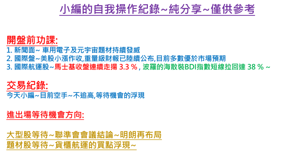 ~~早安台股~2021/11/1 中小型股活蹦亂跳,大型股仍需等待聯準會方向 分類:股盈Good IN2021 /年 11 /月 1 /日發表於早安台股 分享此文: 按一下即可分享至 X(在新視窗中開啟) X 按一下以分享至 Facebook(在新視窗中開啟) Facebook 喜歡 正在載入... 相關 發表者:股盈Good IN 從小即喜愛投資理財的小馬~~一路走來坎坎坷坷~~漸漸地邊摸索邊跌倒的走向了康莊大道 檢視更多文章